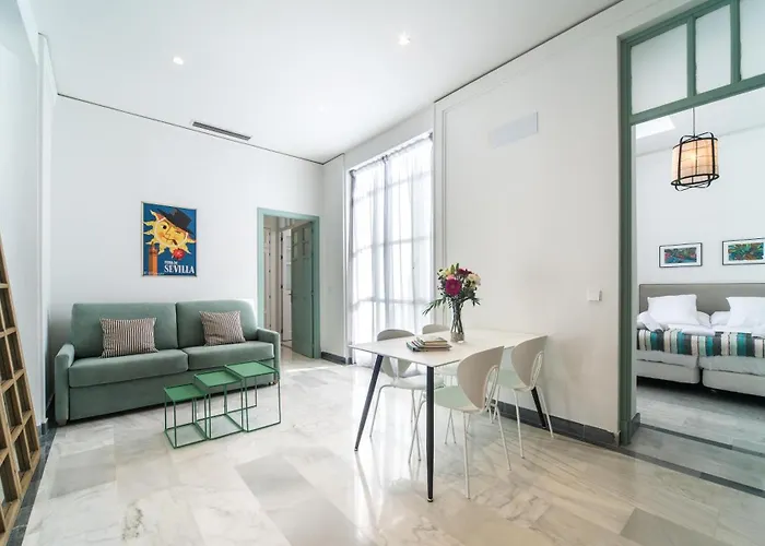 El Rey De Sevilla Flats - Arenal, situado a tan solo 6 minutos a pie de la Catedral de Santa Maria de la Sede de Sevilla, se encuentra a a unos 2 km de un importante lugar para familias como la Calle del Infierno. El apartamento ofrece una terraza y vistas a la ciudad.